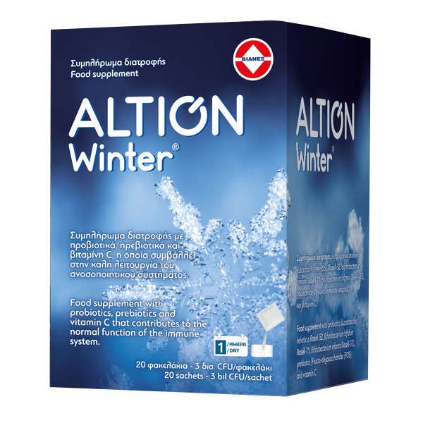 Ήξερες ότι το βασικό όργανο θωράκισης του ανοσοποιητικού συστήματος είναι το έντερο; Με το καινοτόμο Συμπλήρωμα Διατροφής ALTION Winter ενισχύεις το βασικό όργανο της άμυνας σου με προβιοτικά (Lactobacillus helveticus Rosell-52, Bifidobacterium Bifidum Rosell-71, Bifidobacterium Infantis Rosell-33), φυτικές ίνες και βιταμινη C που συμβάλλει στην ενίσχυση του ανοσοποιητικού σου συστήματος και των παιδιών σου.