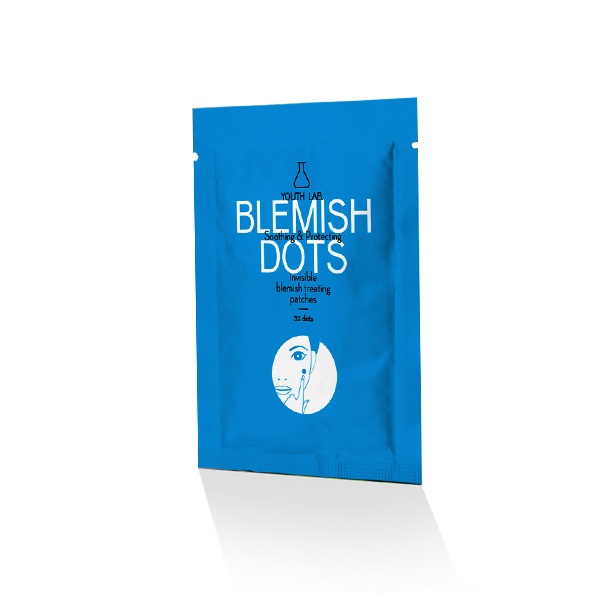 Blemish Dots για λιπαρό κι ερεθισμένο δέρμα. 32 καινοτόμα, διάφανα επιθέματα που αντιμετωπίζουν τοπικά σπυράκια και μαύρα στίγματα, καταπραΰνουν το ερεθισμένο δέρμα και ταυτόχρονα προφυλάσσουν την προσβεβλημένη περιοχή από επιπλέον ερεθισμούς λόγω του makeup.